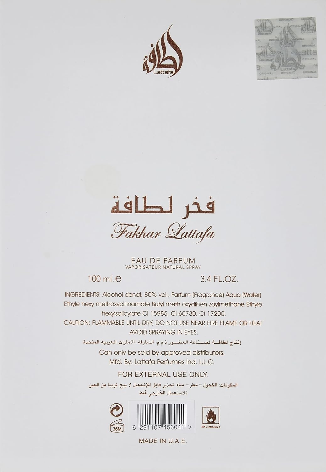 Fakhar Lattafa es conocido por su larga duración, manteniendo su aroma distintivo durante muchas horas, lo que lo hace ideal para uso prolongado.